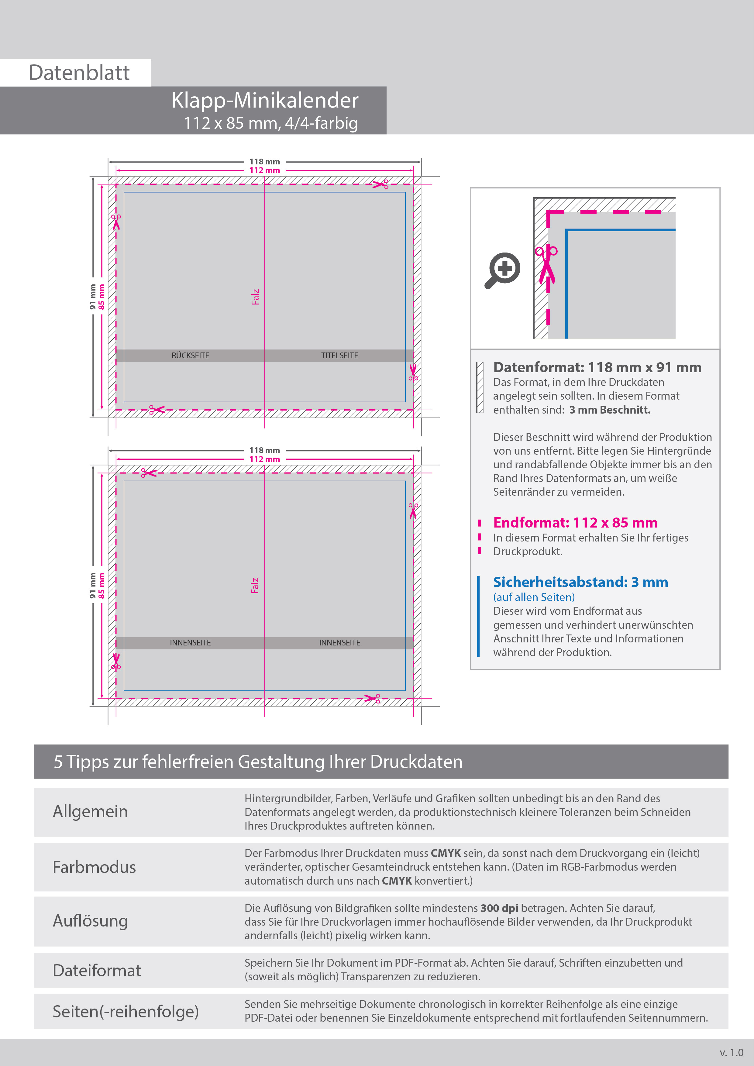 Klapp-Minikalender hoch 4/4 farbig (beidseitiger Druck)